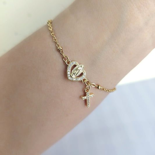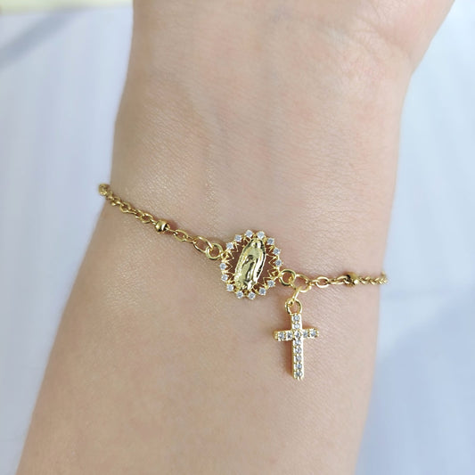 Pulsera Virgen Maria y Cruz Mini Circones Estilo 2