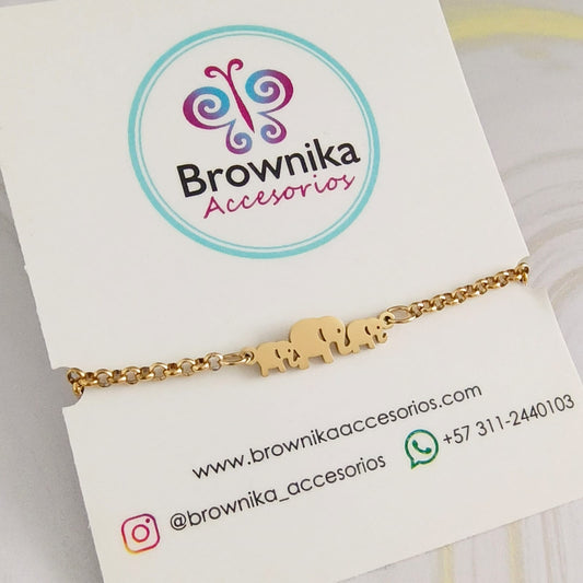 Pulsera Elefantes en Acero de Titanio Hipoalergénico Dorada.