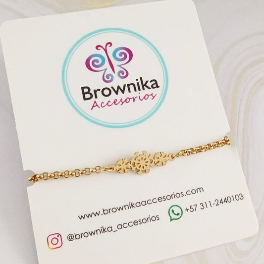 Pulsera Copos de Nieve en Acero de Titanio Dorada.