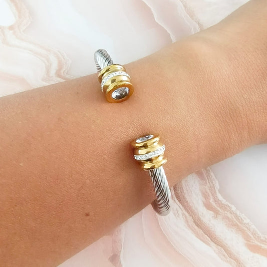 Brazalete Acero Inoxidable con incrustación de circón.