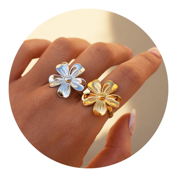 Anillo ajustable bicolor Dorado Corazón Plateado