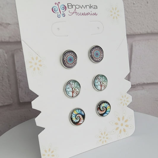 Set de Topos x3 Mandala, Estelar & Árbol de la Vida – Acero Hipoalergénico