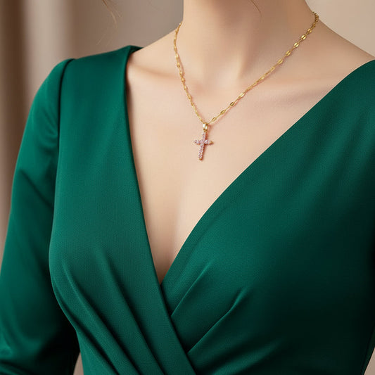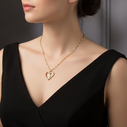 Collar Virgen de Guadalupe forma Corazón y circones brillantes & Topos