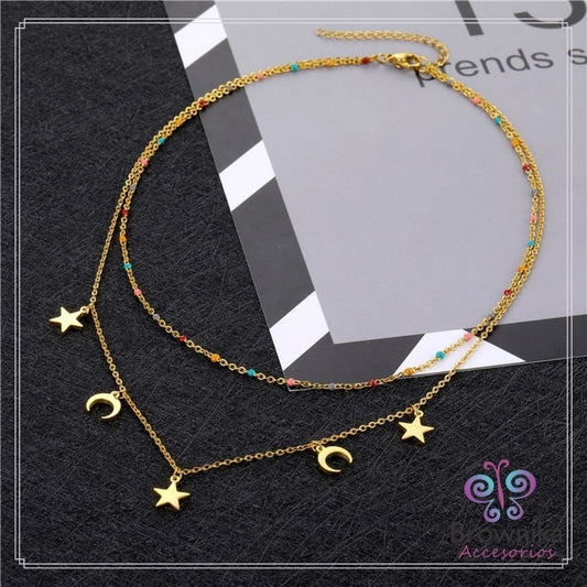 Cadena Doble Lunas, Estrellas & Topos