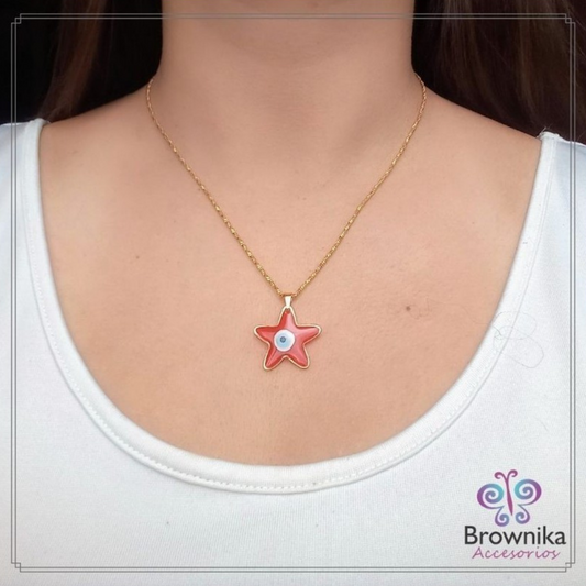 Cadena Corta Ojito Turco Mini Rojo & Topos
