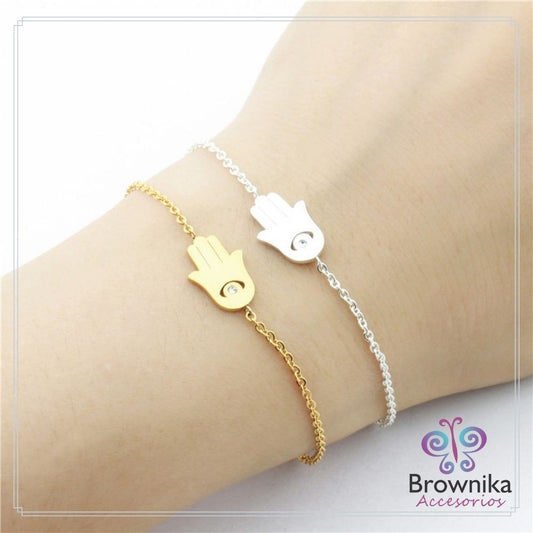 Pulsera Gruesa Mano Jamsa y Ojo Turco