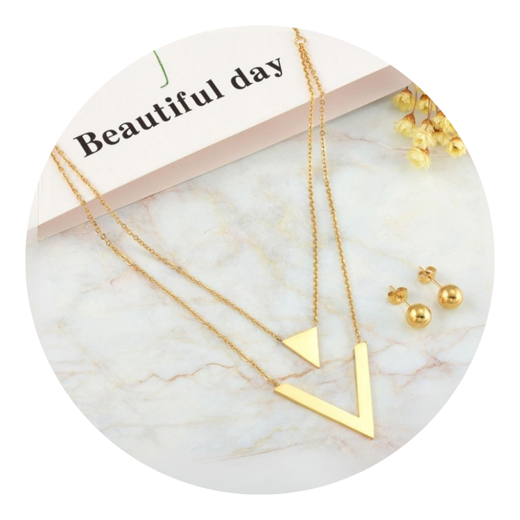 Collar tres capas Doradas con dije de cruz & Maxi topos Dorados.
