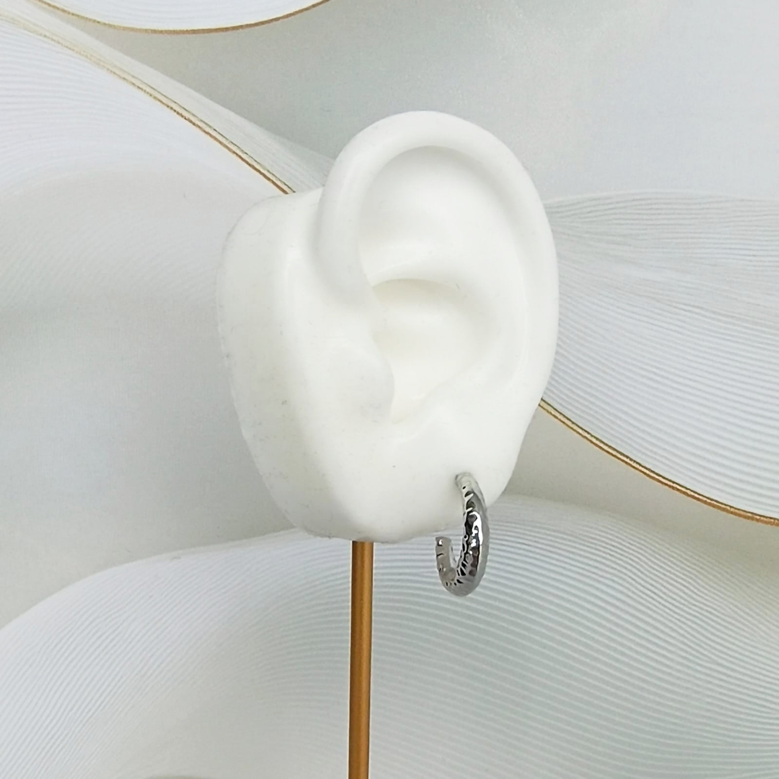 Realza tu look con estas elegantes aretes texturizados en forma de luna pequeños, elaborados en acero inoxidable. Su diseño compacto (21mm) combina la fuerza del acero con el brillo plateado, aportando sofisticación y estilo a cualquier ocasión. Son ligeros, cómodos y resistentes al uso diario, ideales para mujeres que buscan un accesorio moderno y atemporal.