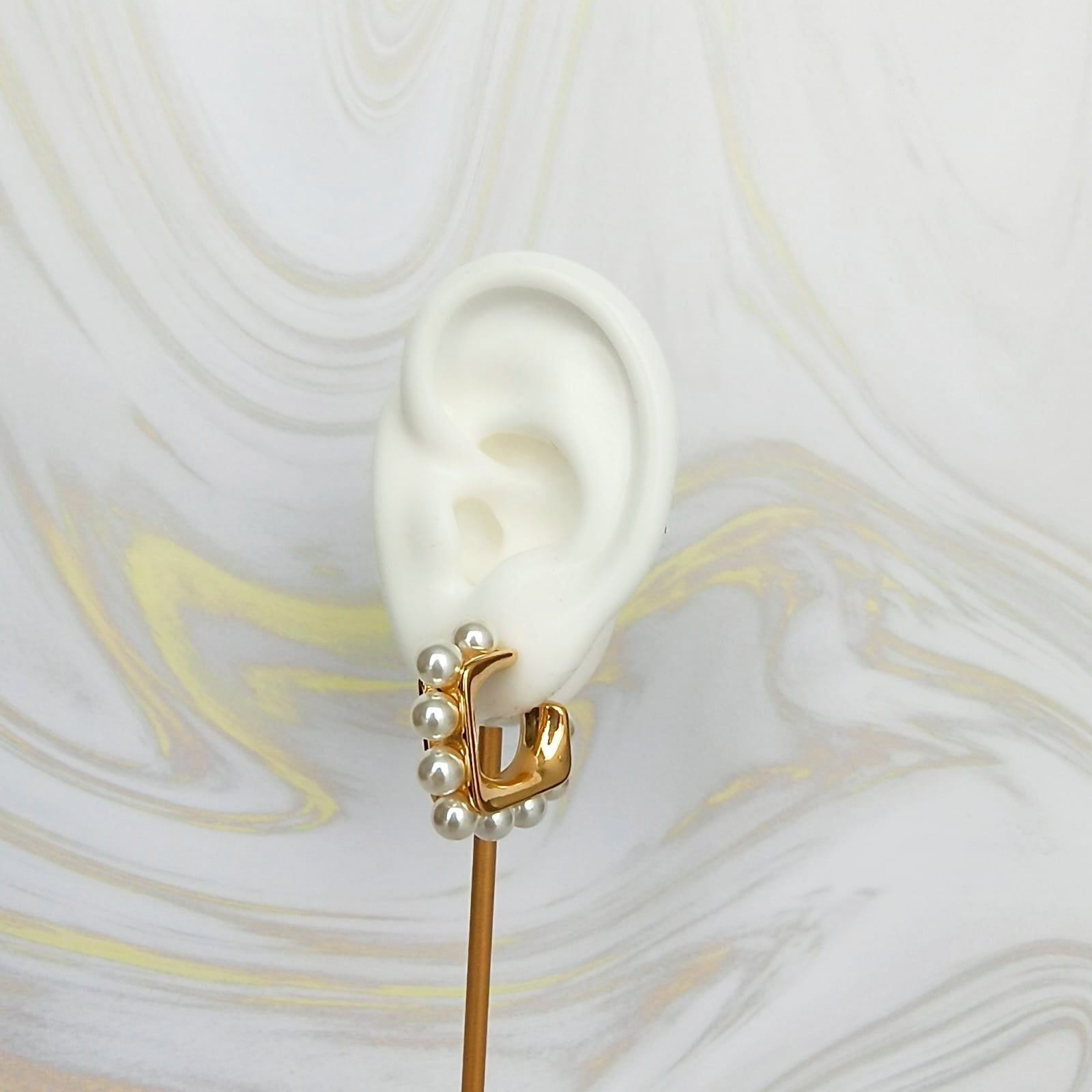 La elegancia nunca pasa de moda y estos aretes dorados con perlas incrustadas lo confirman. Su diseño geométrico moderno en forma cuadrada, fusionado con el brillo atemporal de las perlas, crea una pieza única que equilibra tradición y vanguardia.
